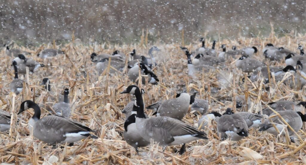 The reason for the mass exodus was no mystery. The stage was set the day before when, on Saturday, December 6, a major winter storm system careened across the northern U.S. In parts of Iowa, the system delivered up to eight inches of new snow. The farther north you looked, the greater the accumulations. Although most of the lakes and wetlands from central Iowa to northern Minnesota were already frozen, some of the larger water bodies still contained open airholes hosting thousands of geese – geese whose food sources were now buried in several inches of new snow.