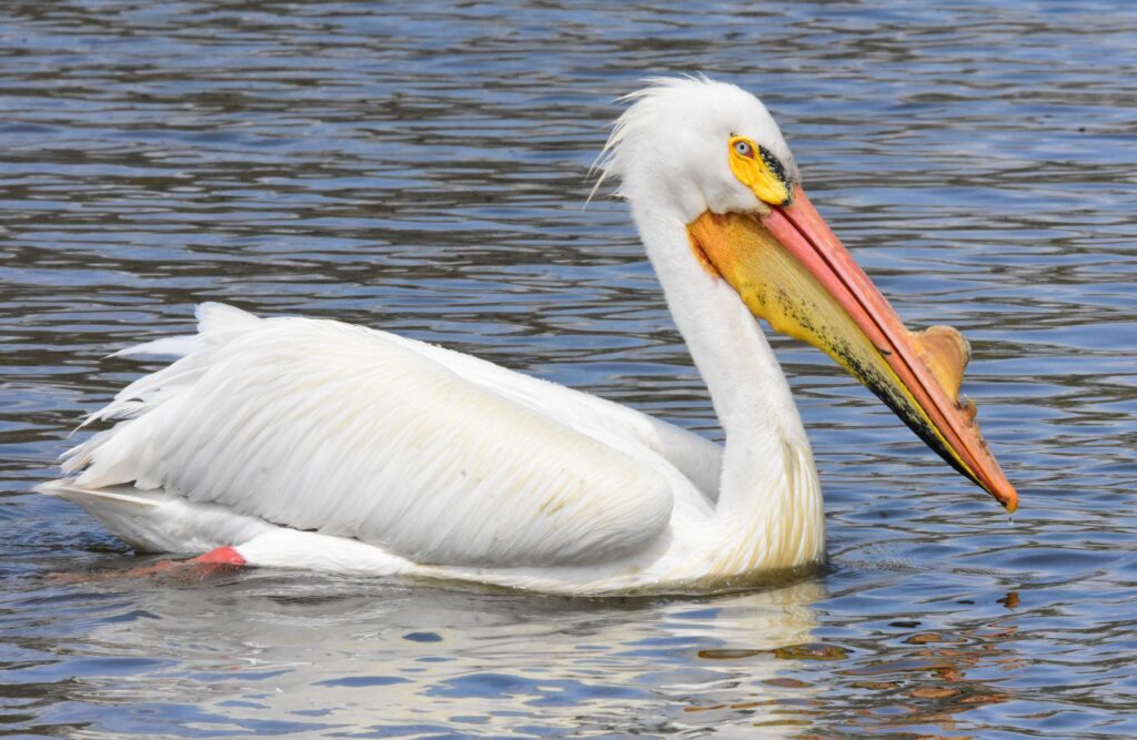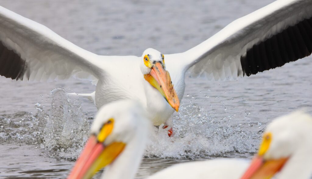 With it’s massive size and nine-foot wingspan, the American white pelican is one of North America’s largest birds. With snow white plumage, jet black wingtips, and outrageously long bill, it would be hard to mistake the pelican for any other species.